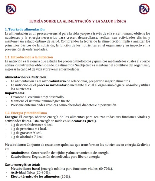 - Materia de “Teoría sobre la alimentación y la salud física” desarrollada.
